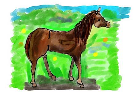 初めてパソコンで絵を描きました。ペインターを使って描きました。マウスとちがいペンは使いやすかったです。足のところは大変苦労して描きました。